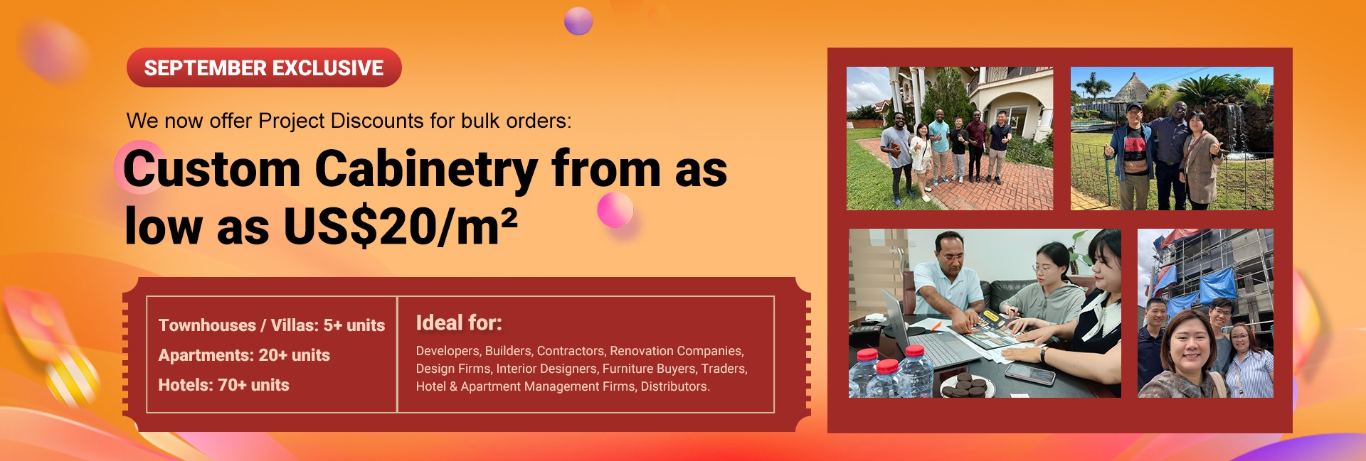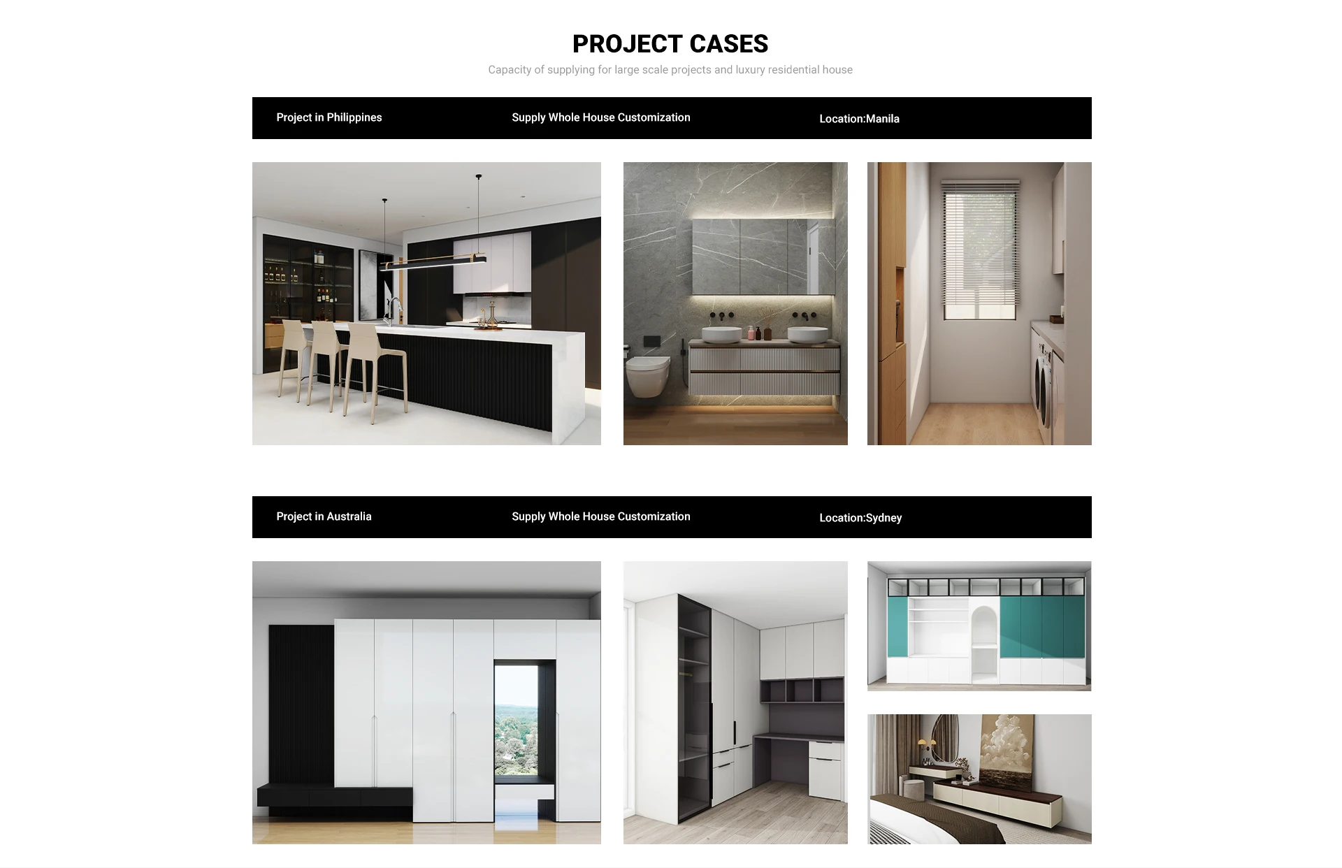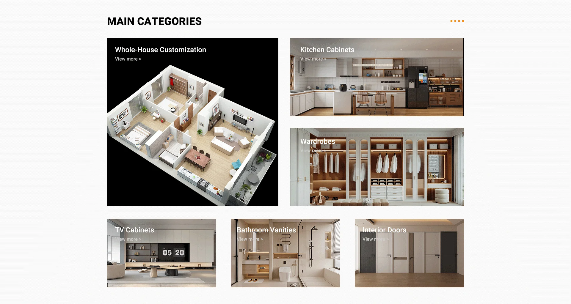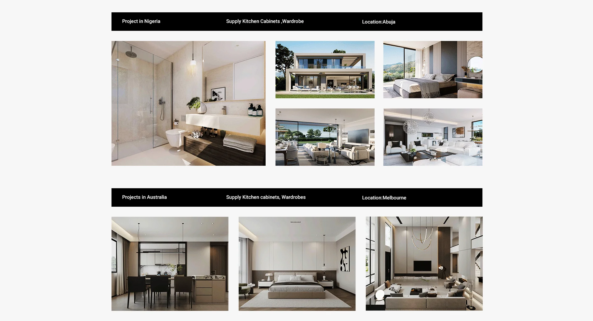 Productos principales:Gabinetes de cocina, tocadores de baño, armarios, soportes de TV